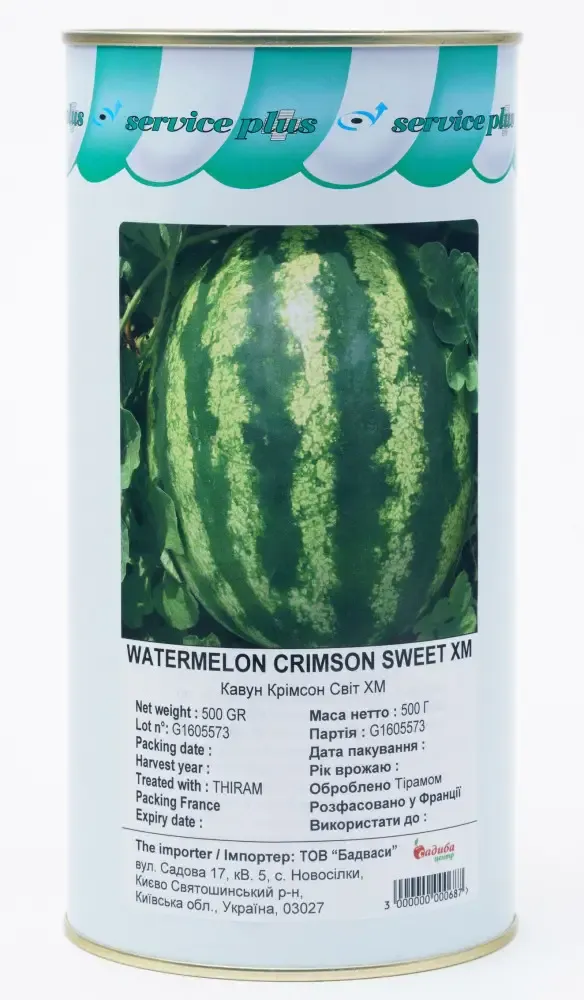 Кавун Кримсон Світ (Crimson Sweet) від французької компанії GSN Semences — класичний, перевірений часом сорт із високою врожайністю, відмінним смаком та чудовою транспортабельністю. Плоди великі, округло-овальні, із характерною світло-зеленою шкіркою та темними смугами, масою 8 – 12 кг. М’якуш яскраво-червоний, соковитий, цукристий (вміст цукру до 12 %), з дрібним насінням і ніжною структурою.