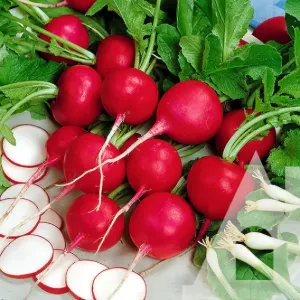 Редиска Чемпіон - пізньостиглий (30-40 днів) сорт для вирощування у весняно-літний період у відкритому й закритому ґрунті. Гичка маленька, компактна. Коренеплоди округлі, малиново-червoного кольору, в діаметрі 3,5-4,0 см, вагою 20-25 г. М’якуш білий, ніжний, хрусткий і соковитий, солодкуватий на смак із приємною гостринкою. Сорт має подовжений період формування врожаю. Плоди виповнені, не мають порожнин і довго не дрябліють, привабливо й апетитно виглядають у пучечках. Урожайність 1,1-1,4 кг/м2. Сорт популярний серед городників, оскільки невибагливий в догляді, не вражається хворобами й не стрілкується, дуже смачний, гарантовано забезпечує якісний врожай.