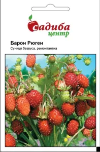 Суниця Барон Рюген - ранньостиглий сорт безвусої суниці. Формує компактні кущі висотою 15 см, за сезон здатний віддати до 1000 ягід з куща. Невеликі ягоди дуже смачні, червоні, кисло-солодкі, з приємним ароматом. Maca ягід 2,5-5 г.