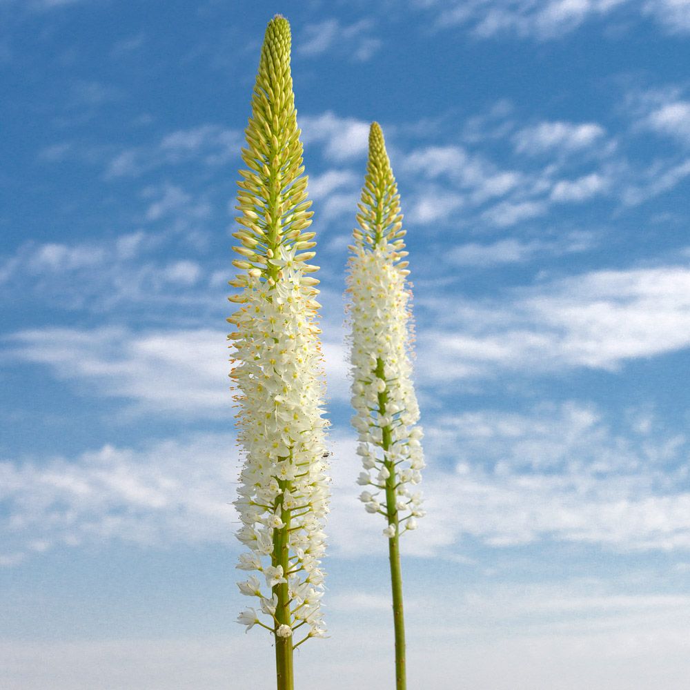 Еремурус гімалайський (Eremurus himalaicus) — вражаюча багаторічна декоративна рослина, відома своїми величними свічкоподібними суцвіттями білосніжного кольору. Квітконос може досягати 150–200 см, утворюючи сотні квітів, що розпускаються поступово знизу вгору. Рослина створює ефектну вертикаль у саду й чудово поєднується з ліліями, ірисами, півоніями та злаками.