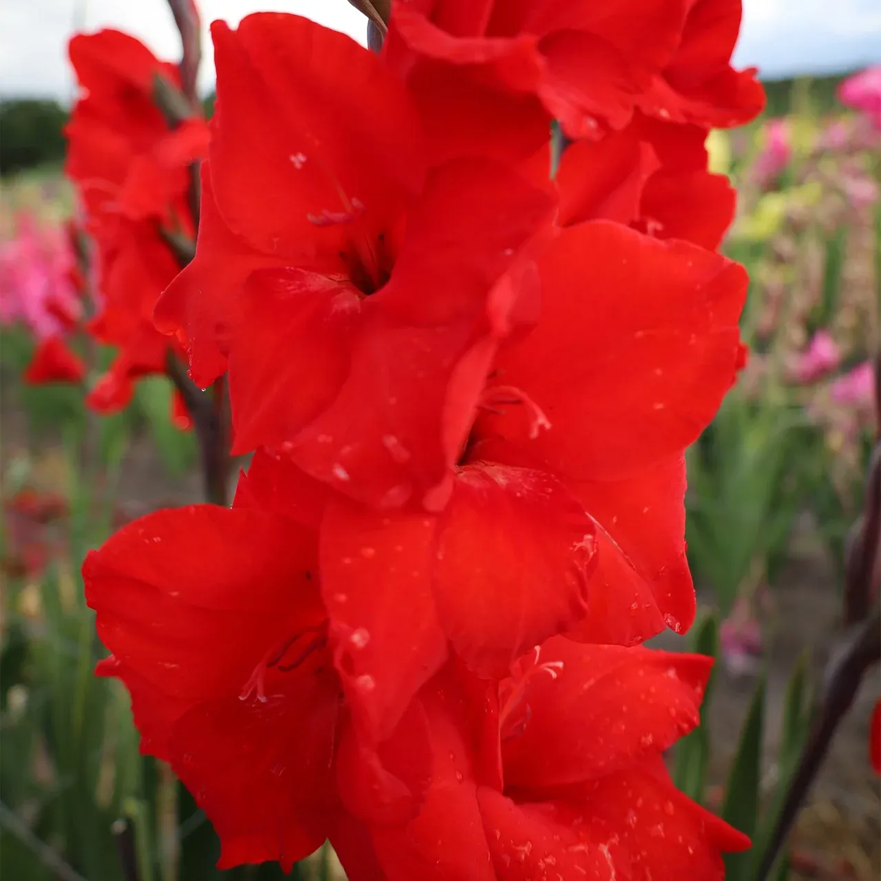 Гладіолус Dador de Pan — яскравий великоквітковий сорт із насиченим червоним або рожево-червоним забарвленням квітів. Високі міцні стебла формують ефектні суцвіття, які добре виглядають у саду, на клумбі та у зрізі. Сорт підходить для створення виразних вертикальних акцентів у квітнику, а також для букетів і святкових флористичних композицій.