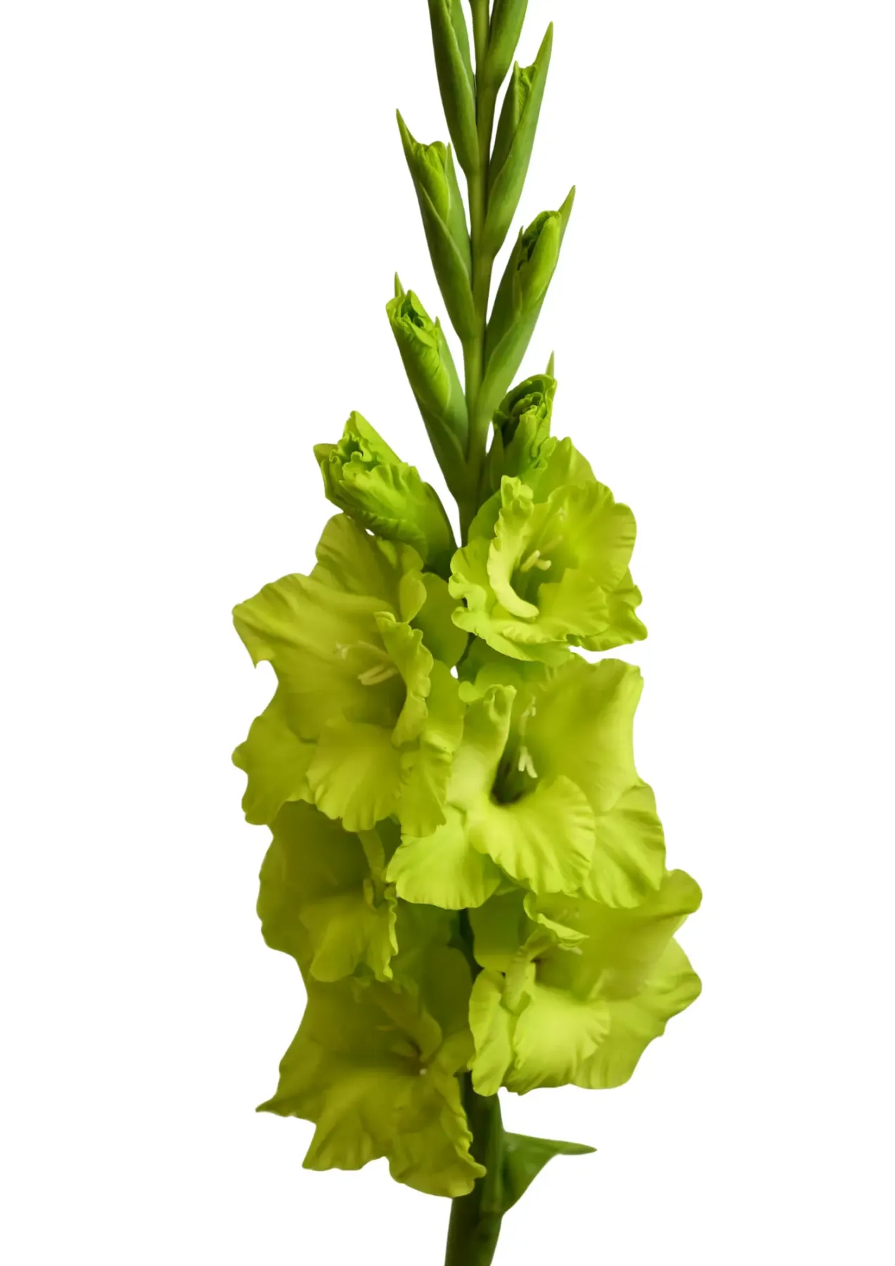 Гладіолус Green Star — незвичайний великоквітковий сорт із ніжним салатово-зеленим забарвленням квітів. Його високі стебла та гофровані пелюстки створюють свіжий, елегантний акцент у саду. Сорт добре підходить для клумб, міксбордерів, групових посадок і вирощування на зріз. У букетах Green Star гарно поєднується з білими, жовтими, фіолетовими, рожевими та бордовими квітами.