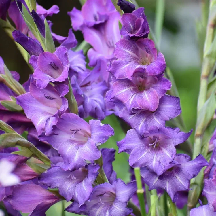 Гладіолус Performer — ефектний великоквітковий сорт із насиченими фіолетово-синіми квітами та світлим акцентом у центрі. Високі міцні стебла формують виразні суцвіття, які добре виглядають у саду, на клумбі та у зрізі. Сорт підходить для створення яскравих вертикальних акцентів у квітнику, а також для букетів і флористичних композицій.
