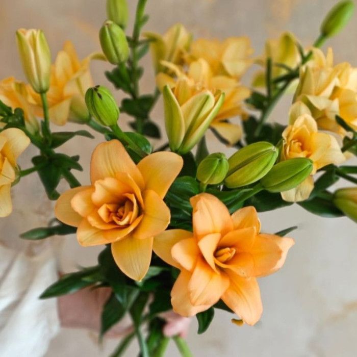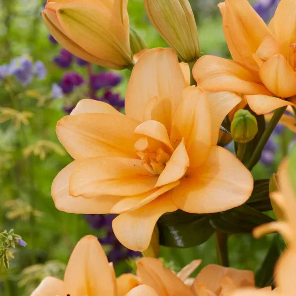 Лілія Charming Beauty — яскравий махровий ЛА-гібрид із великими помаранчевими квітами. Сорт формує міцні стебла, добре виглядає на клумбах, у групових посадках і підходить для зрізу. Завдяки теплому насиченому забарвленню ця лілія створює сонячний акцент у саду та гарно поєднується з білими, кремовими, жовтими, бордовими й фіолетовими квітами.