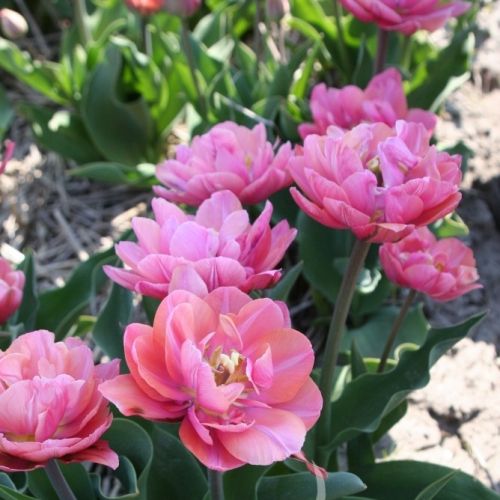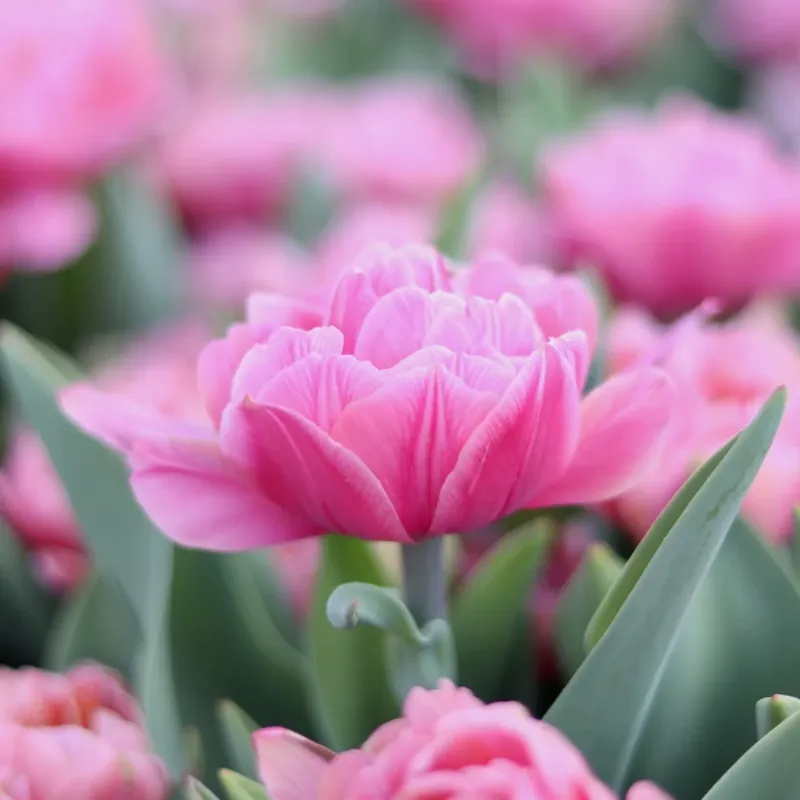Тюльпан Pink Cameo — це вишуканий махровий сорт, який вражає розкішними рожевими бутонами з м’яким перламутровим відтінком. Його густі, багатопелюсткові квітки нагадують півонії, завдяки чому Pink Cameo часто обирають для створення елегантних весняних композицій і букетів.