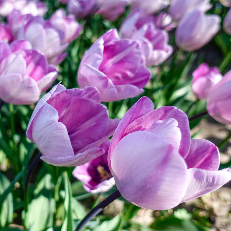 Тюльпан Jacuzzi (Triumph Group) — елегантний сорт із неповторним бузково-рожевим кольором, який переливається ніжними ліловими відтінками. Його квіти мають класичну келихоподібну форму, щільні пелюстки з тонким шовковистим блиском і чудово симетричну будову. На сонці Jacuzzi виглядає ніби сяє зсередини — перламутрові переливи роблять його одним із найвишуканіших сортів групи Triumph.