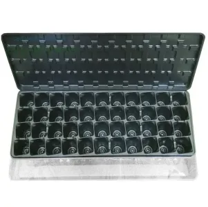 Кожна комірка касети має габарити 40x40x55 мм, загальні розміри парника становлять 490x195x65 мм.