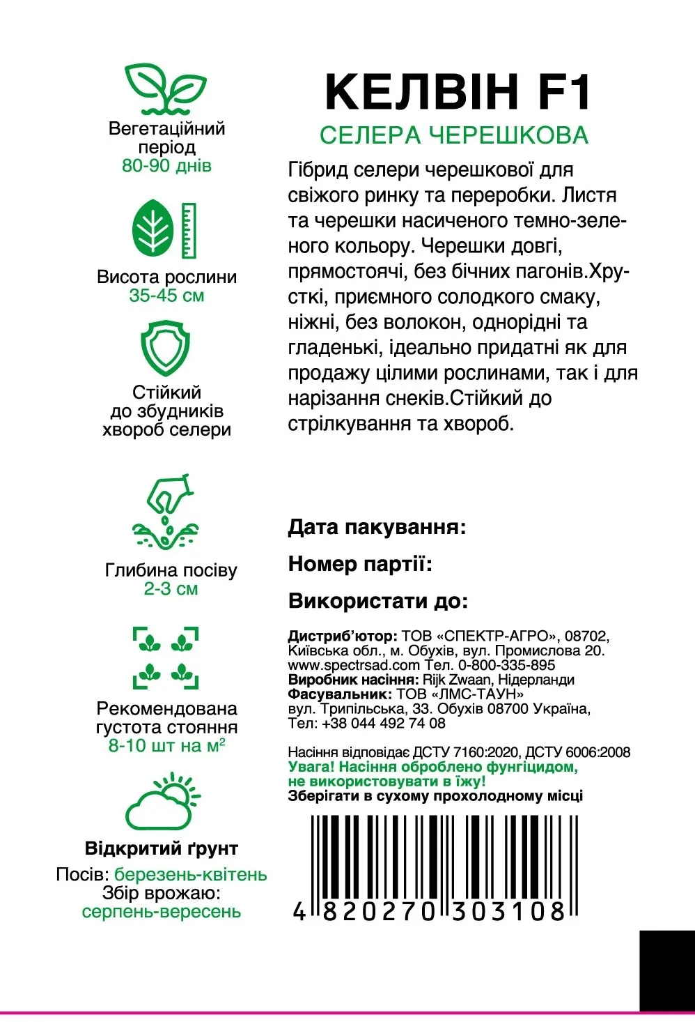 НАСІННЯ СЕЛЕРА ЧЕРЕШКОВА КЕЛВІН F1, УПАКОВКА 50 ШТ
