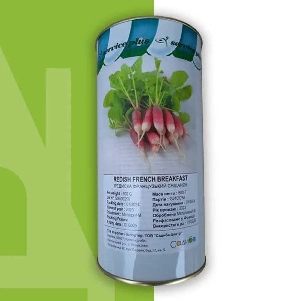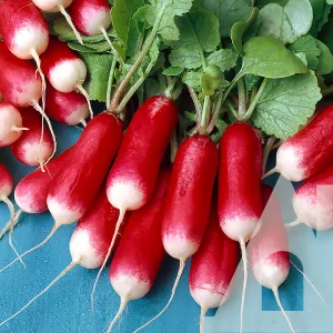 Редиска Французький сніданок - ранньостиглий (20-25 днів) сорт видовженої редиски для вирощування у відкритому ґрунті й плівкових теплицях. Коренеплоди циліндричної форми, рівненькі, рожево-червоні з білим кінчиком, довжиною 6-8 см, масою 18-25 г. М’якуш яскраво-білий соковитий, солодкувато-ніжний, хрусткий, без гіркоти, не утворює порожнечі. Врожайність 1,5-2 кг/м2 високоякісної продукції. Зібраний врожай зберігає свій товарний вигляд тривалий час. Сорт має чудову стійкість до стрілкування, відноситься до категорії всесезонних, часто використовується для повторного посіву.