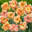 Бутони великі, до 10 см у діаметрі, злегка хвилясті по краях. Коронка насиченого відтінку, ближче до центру — глибше помаранчева, створює контраст і об’єм. Цвіте рясно, на міцних стеблах заввишки близько 40 см. Ідеально підходить для зрізу, весняних композицій і групових посадок.