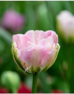 Тюльпан Marshmallow — це чарівний махровий сорт, який вражає своїми великими, м’якими бутонами ніжно-рожевого кольору з білими переливами. Його пишні квітки нагадують десертний зефір, що й пояснює назву сорту. Завдяки цій повітряній красі Marshmallow став улюбленцем садівників і флористів.